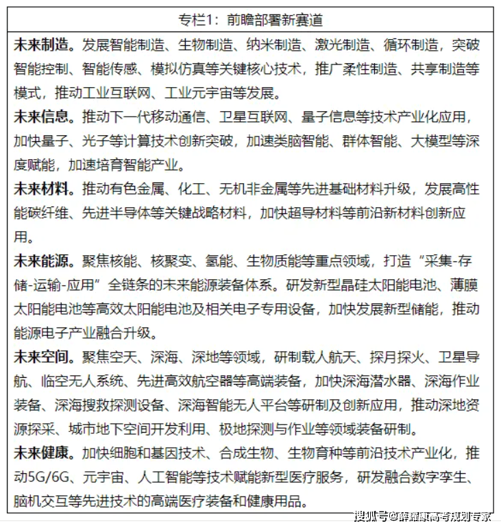 国度严沉计谋规划是洞察将来成长脉络的指南针。紧跟国度计谋标的目的,高考生可沉点研读《十四五规划和2035近景方针纲要》《教育强国扶植规划纲要(2024—2035年)》等纲要性文件,系统梳理科技立异、绿色低碳、数字经济、高端制制等环节范畴。还能够关心教育部、国度发改委等权势巨子部分发布的政策和财产线图,把握新一代消息手艺、生物医药、量子科技等“将来赛道”的主要消息。